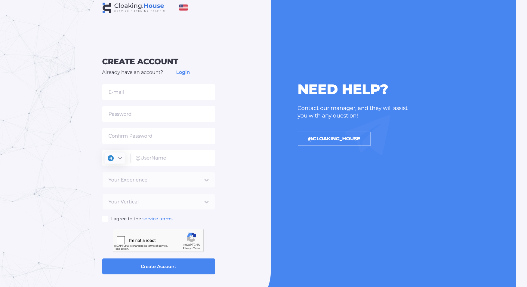 Before configuring proxies, you need an active Cloaking House setup. Head to cloaking.house and register for an account.