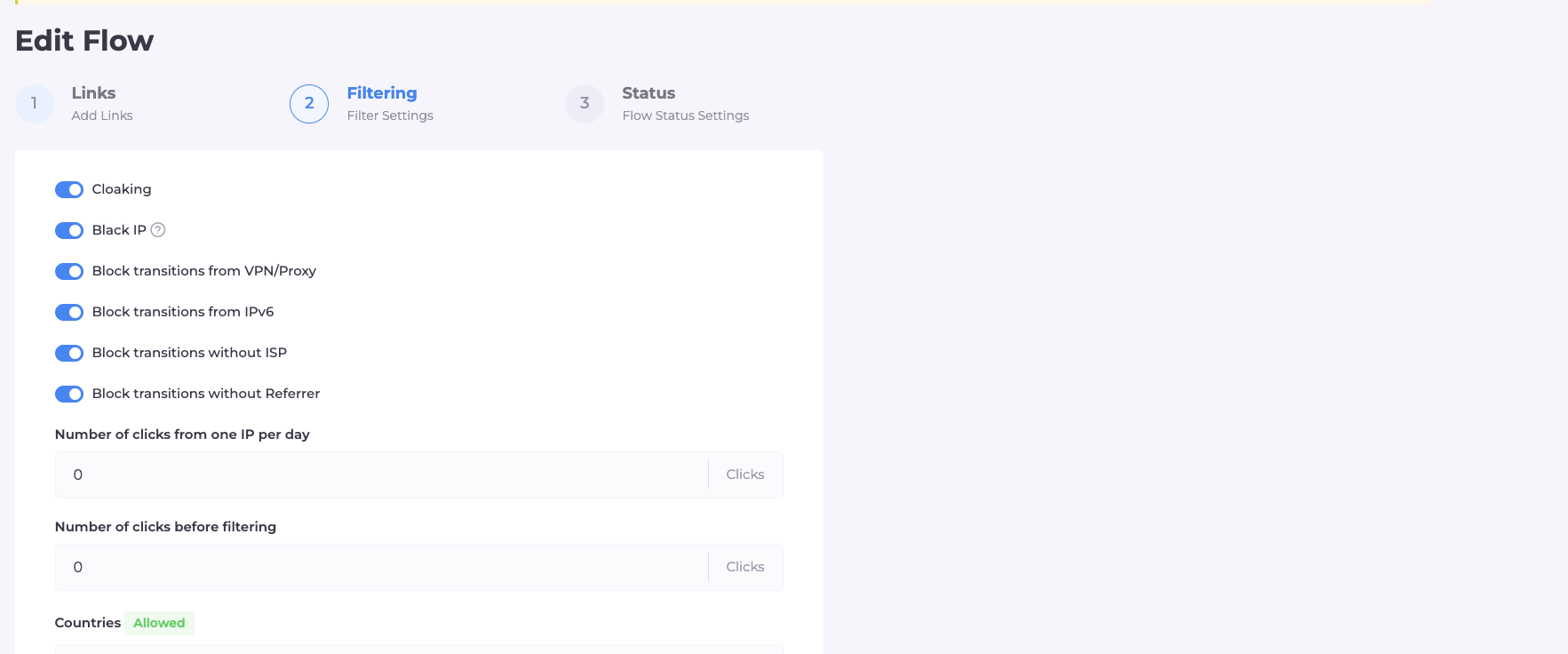 Whitelist your testing IPs: In Cloaking House's flow settings, you can add IP addresses to a whitelist. Add your proxy IPs here during testing so you can see the offer page without disabling filters.